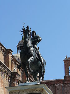 Sin duda el escultor más afamado del siglo XV fue Donatello. Sus dos obras más famosas fueron el David y la estatua ecuestre del condottiero Gattamelata. Andrea del Verrocchio intentó emular a su maestro haciendo una reinterpretación de ambas obras. En 1479 fue llamado a Venecia para realizar el monumento ecuestre de Colleoni. Tras su muerte Alessandro Leopardo fue el encargado de fundir el caballo y de dar los últimos retoques a la obra.